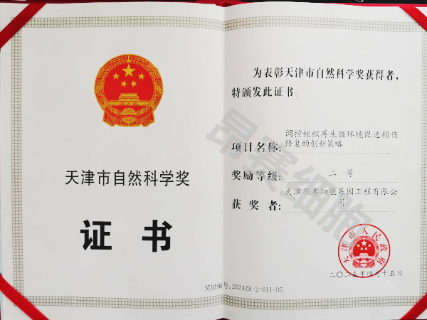 公司合作項目《調(diào)控組織再生微環(huán)境促進損傷修復(fù)的創(chuàng)新策略》獲得天津市自然科學(xué)二等獎。