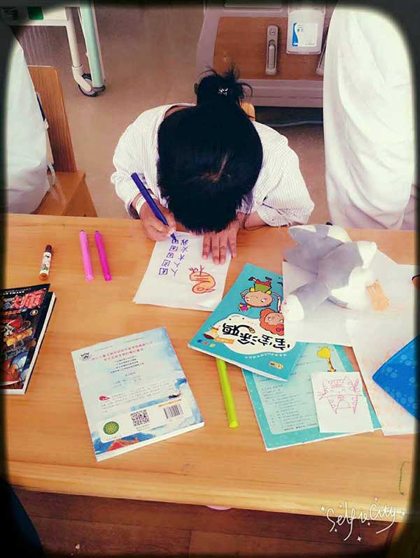 在此期間,為了緩解孩子們就醫(yī)期間的空虛,照顧他們住院期間的生活,昂賽細胞的同事們?yōu)楹⒆觽儙チ司臏蕚涞墓?jié)目以及書本、畫筆與各種玩具,陪伴孩子們一起度過歡樂的時光。